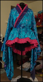 ^^And right now I'm working on getting the yards of fabric ready to be gathered for the rows and rows of ruffles on the sleeves ^_^ (This is also probably the best quality picture in this post lol)