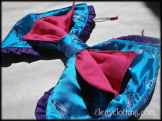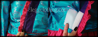 *Whew* I've been mega busy, and I can't stop now! I also put a lot of work into constructing the bows that go down the center front... which I don't have pictures of now. I'm aiming to have this dress done maybe today? Hm.. probably not. I suppose a more realistic goal would be Monday. I feel so bad for making my client wait so long to get the materials, so I'm working on all weekend long!