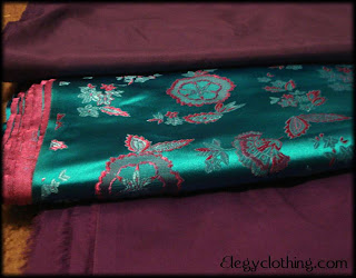 ^^Fabric! (Forgive me for my terrible apartment lighting ;__;) As you can see, I've got the main fabric - a lovely turquoise brocade with purple/pink metallic stitching, purple cotton (bottom) for all the ruffles and underskirt, and a lovely purple lining (top) - since we're going with a brocade instead of a cotton, it's going to need to be lined. This is about 15 yards worth, and definitely not everything, but this is what I managed to get my hands on tonight. I'll probably be going back to the store tomorrow to get more purple cotton and.. oh yeah - all the pink fabric!