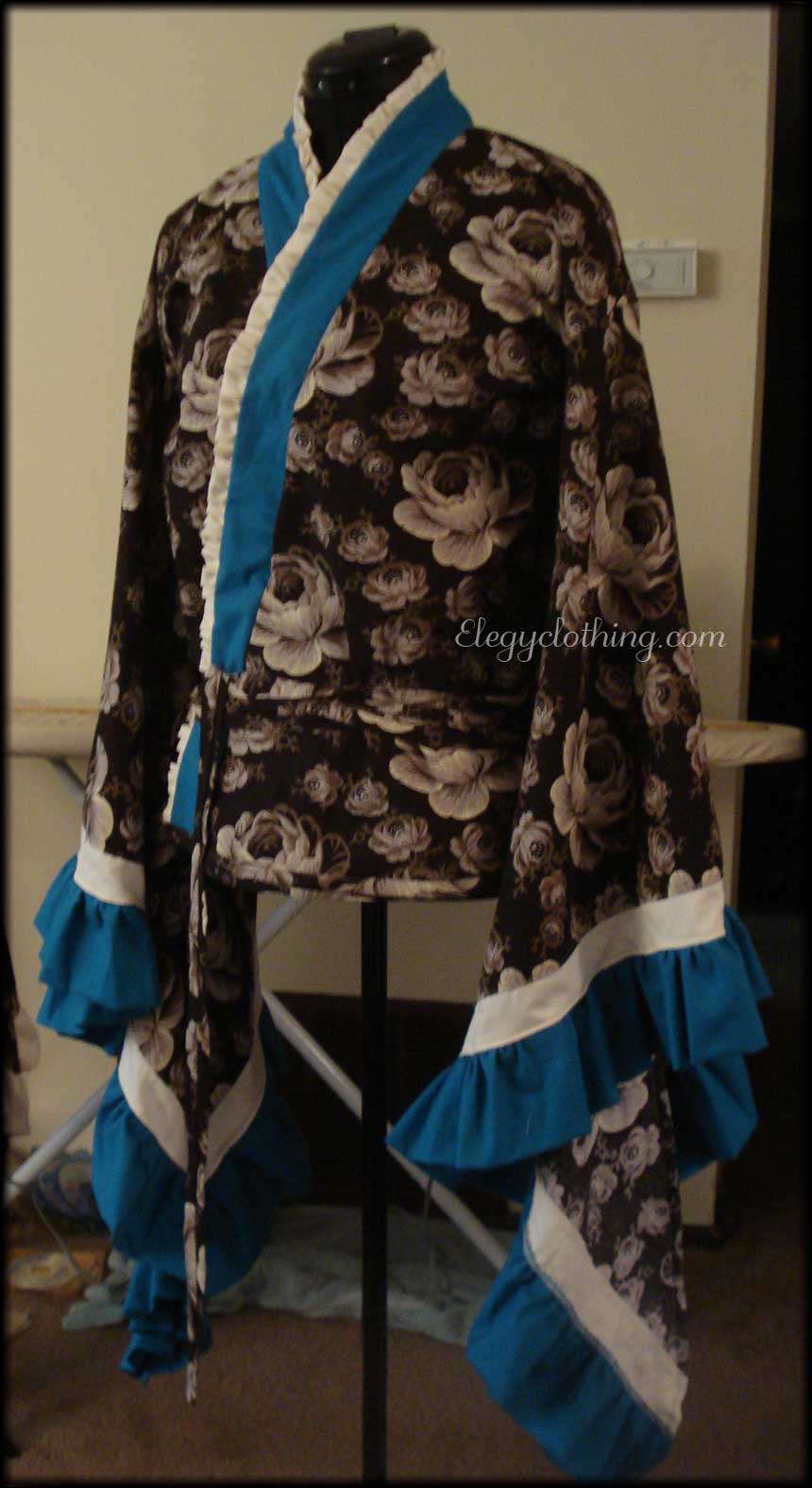 ^^The sleeves are sewn on, the sides of the kimono are sewn together, the bottom is finished, and it has a belt sewn in to keep everything closed, which means this kimono top is finished! ♡
