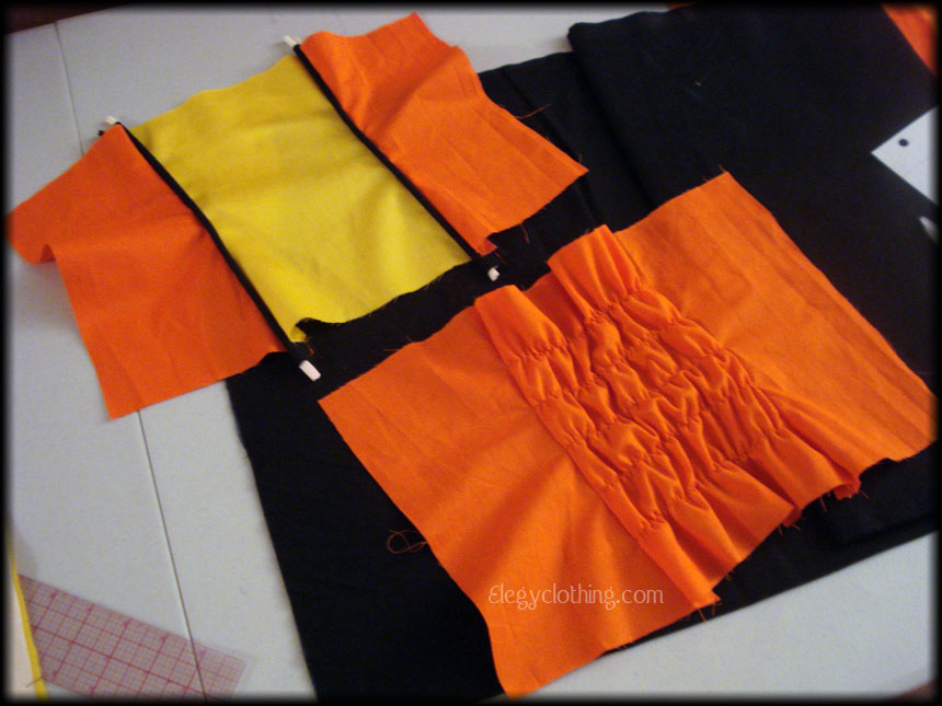 ^^ Waist cincher progress! Since I put cording into the collar, I decided to put some in the princess seams on the front of this to tie it together more. I also think it looks more "cartoony", like Tigger does! (By the way, I'm getting mega confident in my shirring skills! :D)