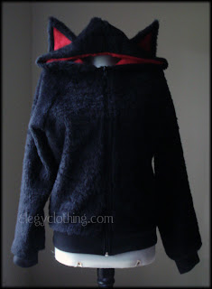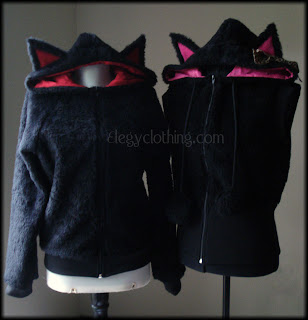 ^ The finished garments - I love having two mannequins! This is the first time I've put color in the ears, and it's looking a lot better than I thought it might. I ended up using fleece since it doesn't fray, I figured it was the best choice. (Also, sorry about the lighting.. it's been raining/overcast like all week ;__;)