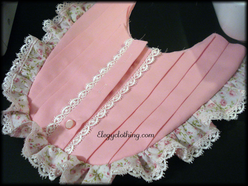 ^^The bib is in! The pin tucks are sort of doing whatever they please at the moment, because I haven't yet basted them down. The back has also been sewn on.